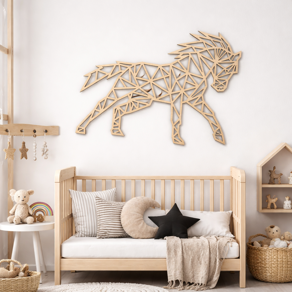 Deze geometrische Eenhoorn is ongeveer 30 cm. Je kan hem ook nog een kleurtje naar keuze geven. Voor de woon of slaapkamer of?? €12,50